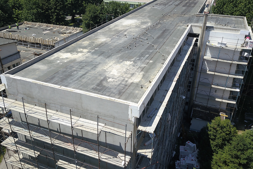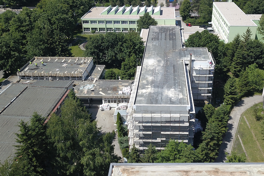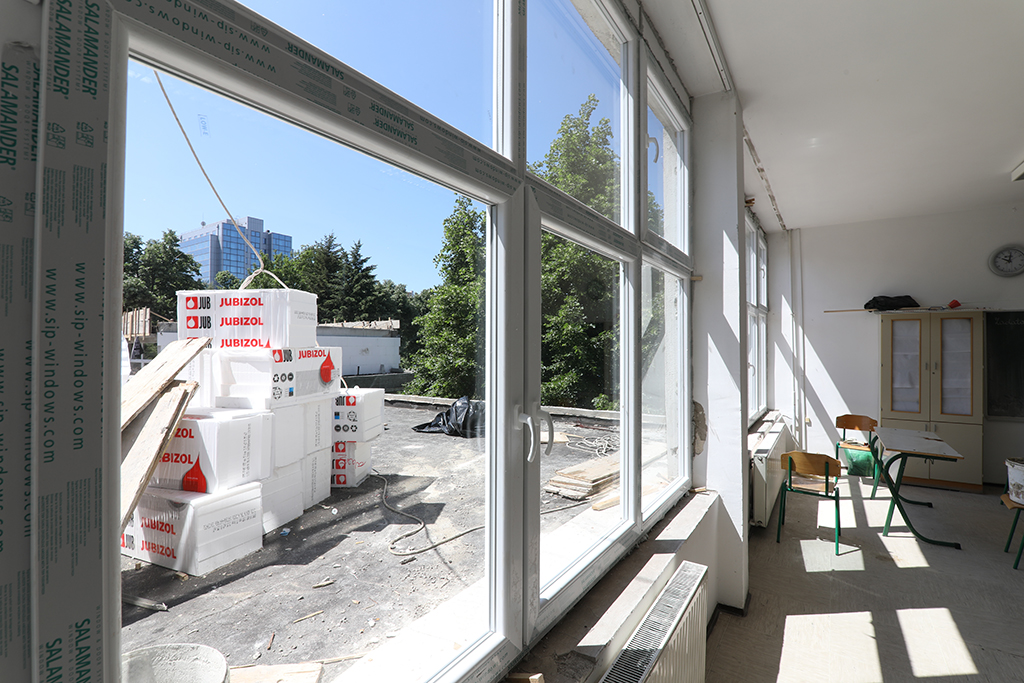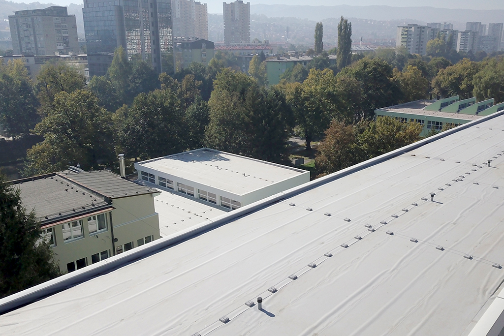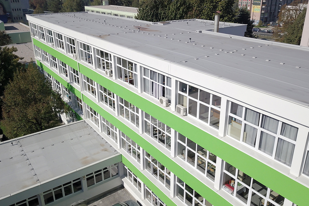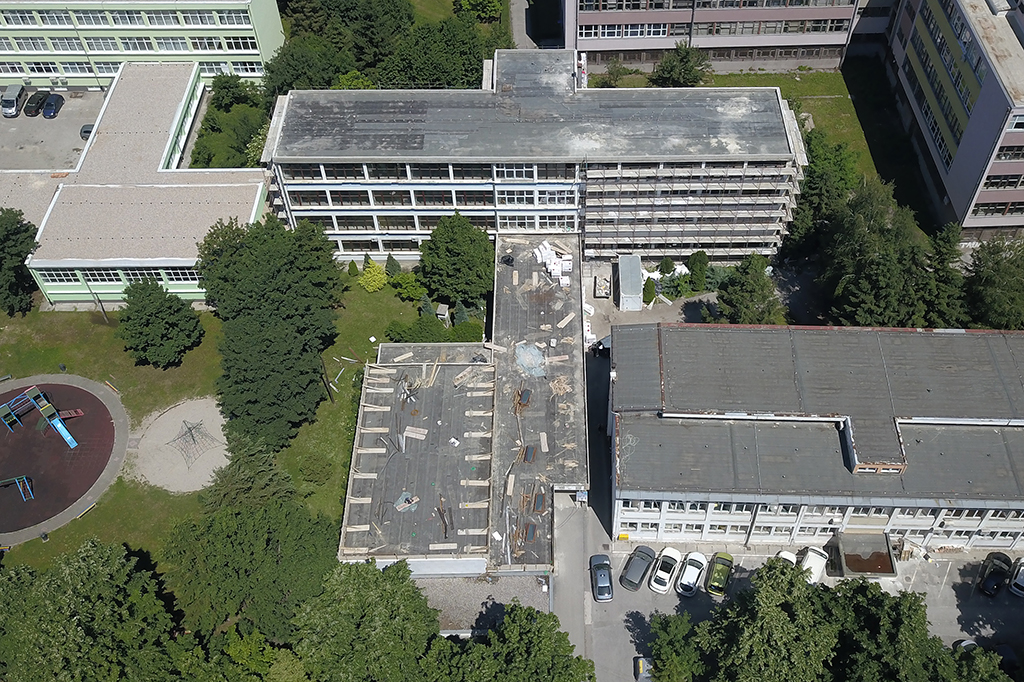 - Rehabilitation of the existing roof of the school building and sports hall, with the installation of thermal insulation;