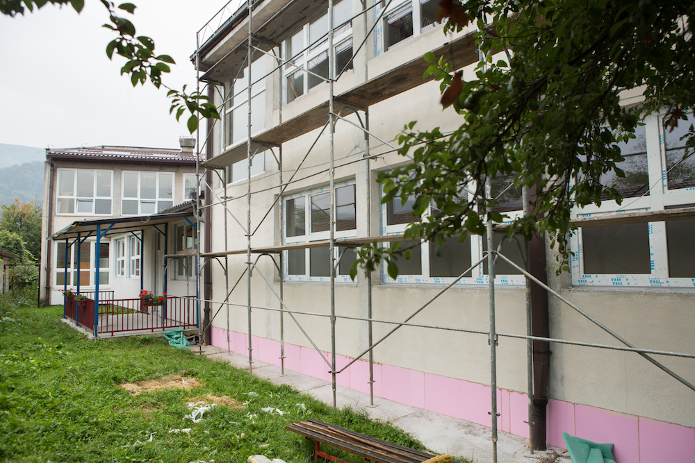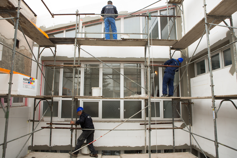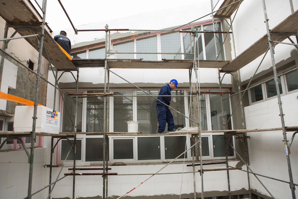 - Thermal insulation of facade and the ceiling of the sloping roof;